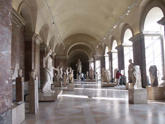 ルーブル美術館は非常に広い美術館で、廊下も長く、その廊下にむき出しに多