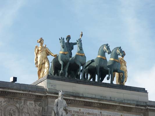 門の頭上には4頭立ての場所を御すナポレオンの姿が作られたそうですが、そ