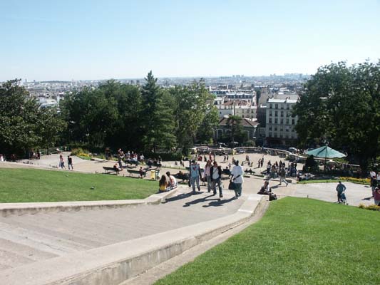 さて、聖堂の前には石段があり、そこからパリの市街を見渡すと、なんともい