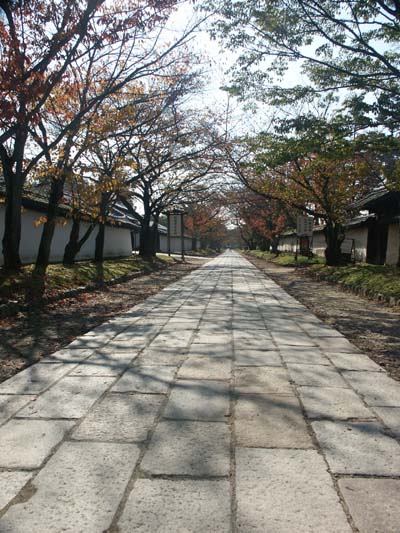 うな石畳の左右に建物が立ち並んでいます。