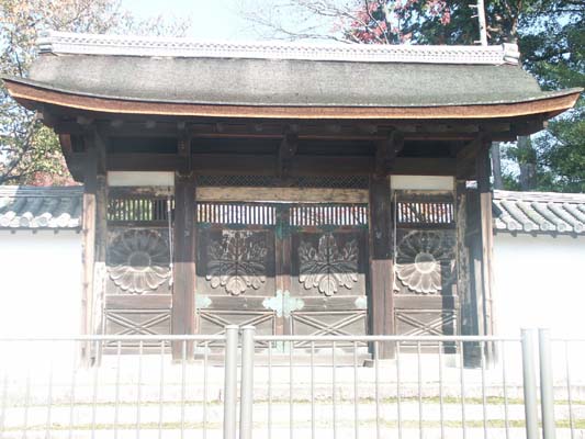 「菊のご紋と桐の紋の刻まれた門」